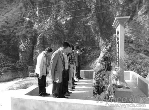 4月23日王偉董事長和阿壩州、汶川縣領導等向新落成的罹難員工紀念碑敬獻花籃。