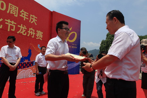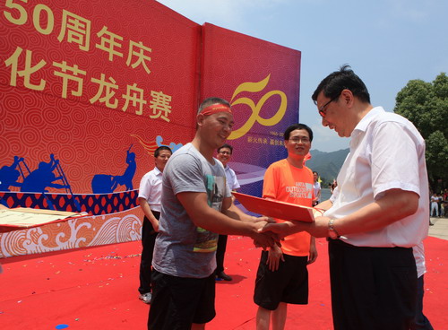 瀏覽量:3421 6月20日,新安集團創建50周年慶暨第四屆新安文化節龍舟賽在新安江上舉行,共有16支代表隊參加本次競賽。